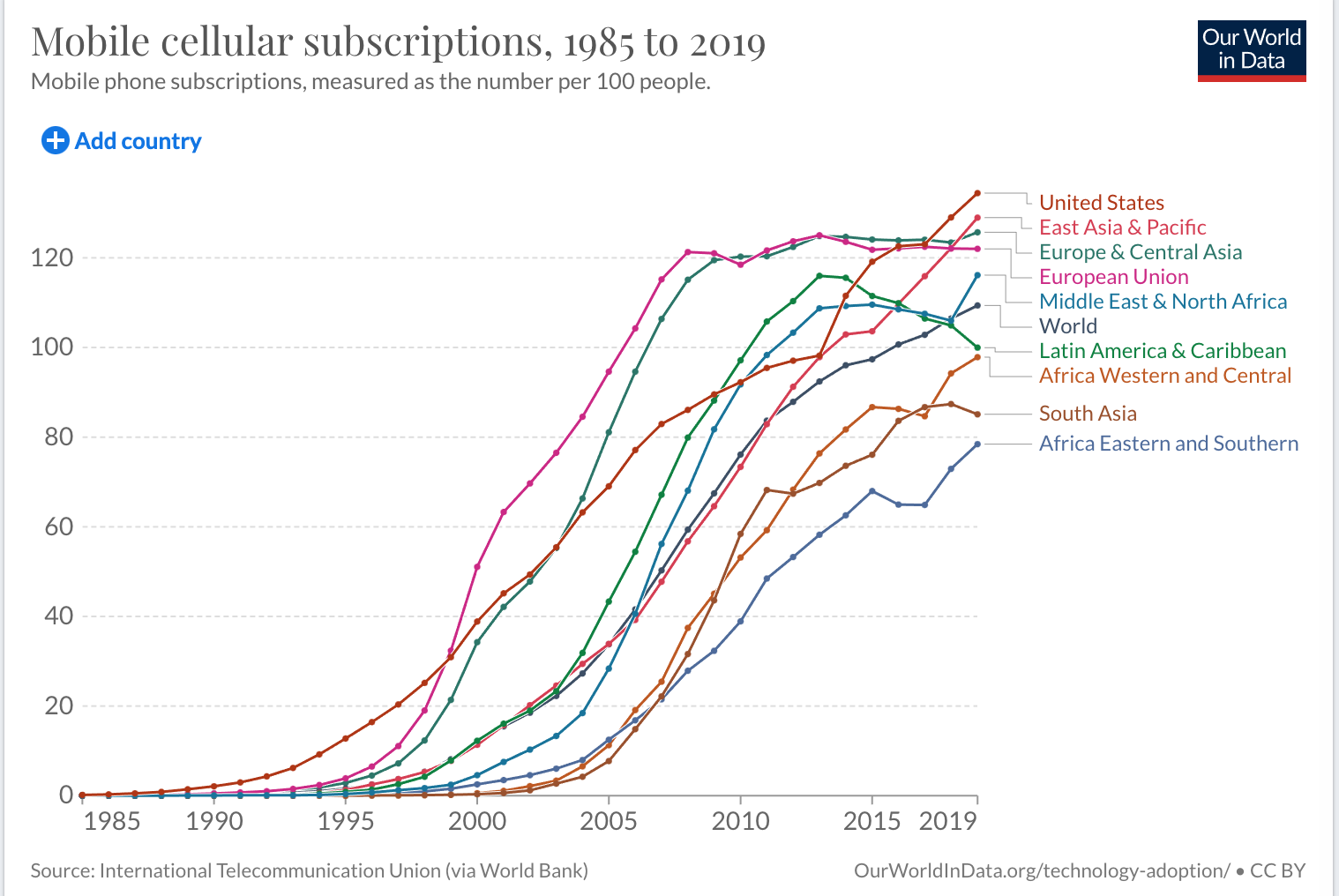 3. Mobile cellular subscriptions Mobile cellular subscriptions - Our World in Data